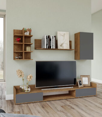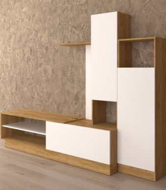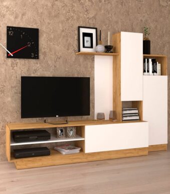 Σύνθεση Τηλεόρασης Melisa 240x45x180εκ Χρυσός Δρύς Με Λευκό