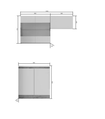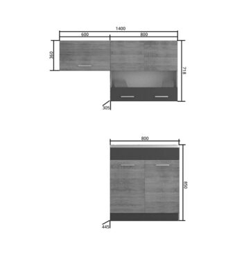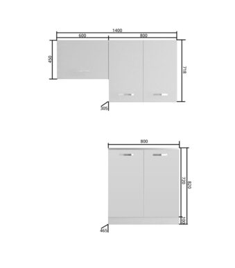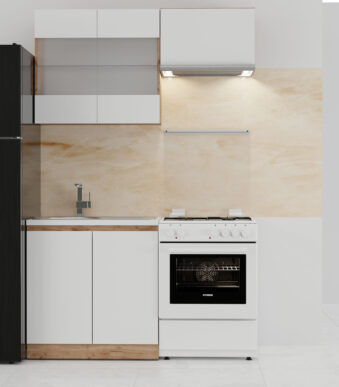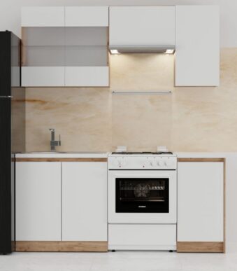 Κουζίνα Soft Σέτ 3 Λευκό με βελανιδιά Σέτ 3 κουτιών Άνω 140εκ Κάτω 80εκ