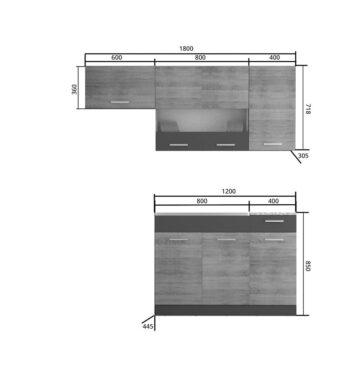 Κουζίνα Alina Σετ 2.2 (δυνατ. επέκτασης) Σονόμα-Μόκκα Σετ 3 κουτιών (2, 2 τρέχ.μέτρα)