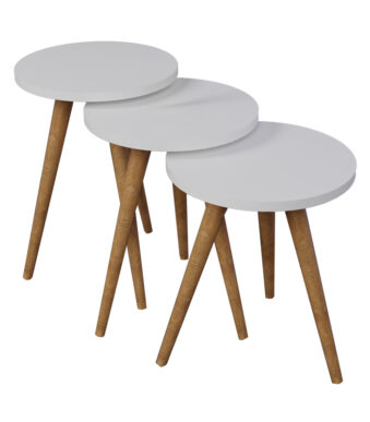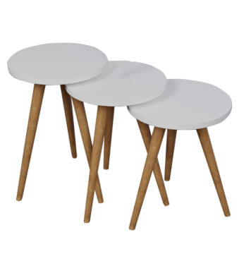 Βοηθητικά τραπέζια Perjene pakoworld σετ 3τεμ μελαμίνη σε λευκή απόχρωση και ξύλινα πόδια