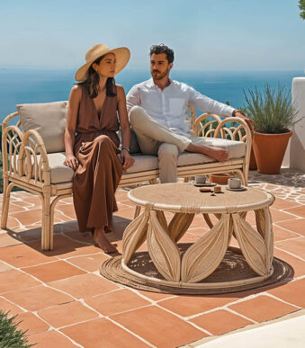 Σαλόνι Ytrone-Siderty pakoworld σετ 2τεμ rattan σε φυσική απόχρωση