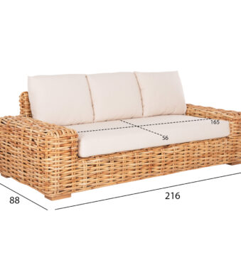 ΚΑΝΑΠΕΣ ΤΡΙΘΕΣΙΟΣ ΕΞ.ΧΩΡΟΥ TROPEL HM9808 ΞΥΛΟ MANGO-RATTAN ΦΥΣΙΚΟ-ΛΕΥΚΑ ΜΑΞΙΛΑΡΙΑ 216x88x85Υεκ