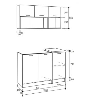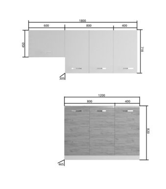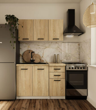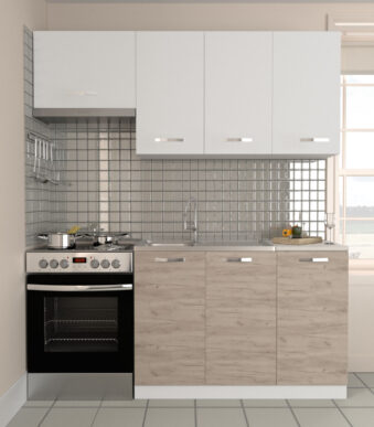 Κουζίνα Charlotte Σετ 3 Λευκή-Φυσ. Δρυς με μεταλλικά χερούλια Σετ 5 κουτιών 3 τρέχ. Μέτρα