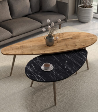 Τραπέζια σαλονιού Monty pakoworld 2 τεμ σε φυσικη-μαύρου μαρμάρου απόχρωση
