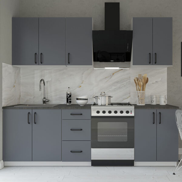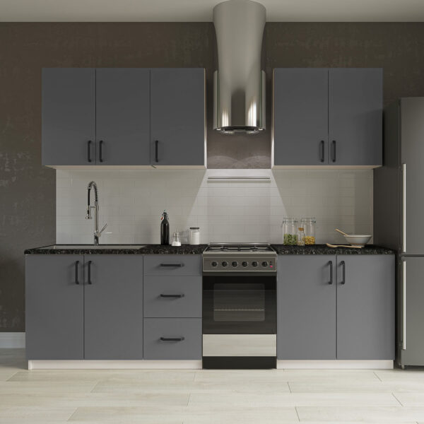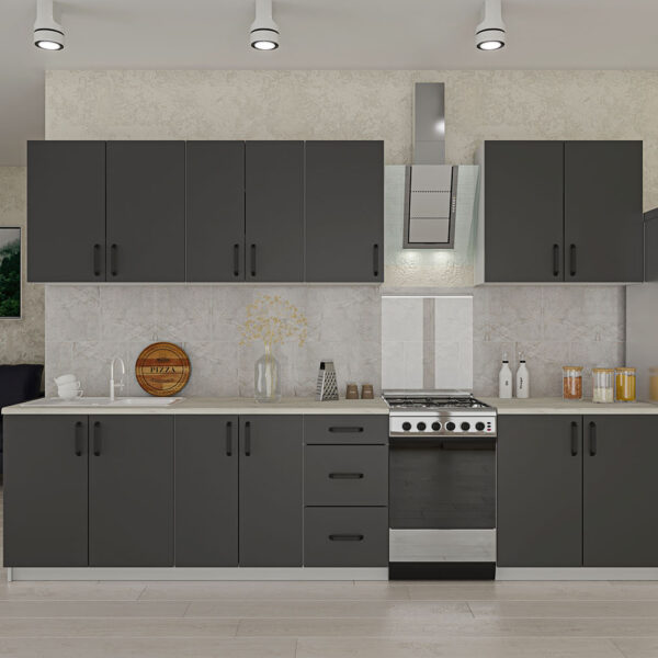 Κουζίνα Modest Σετ 3 Κουτιών Ανθρακί Άνω Κουτιά 140cm Κάτω 80cm