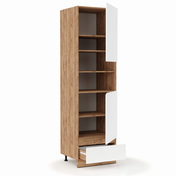 Επιδαπέδια στήλη κουζίνας Soft Λευκό με βελανιδιά Διαστάσεις 60x56x213,4εκ