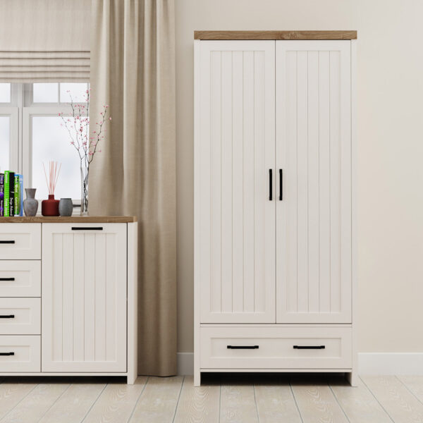 Ντουλάπα Δίφυλλη VERNE Λευκό-Φυσικός Δρυς88.8×53.1×191.6cm