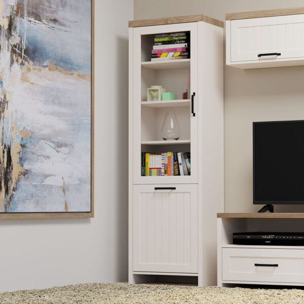 Βιτρίνα VERNE Μονόφυλλη 59.7×37.2×191.6cm Λευκό-Φυσικός Δρυς