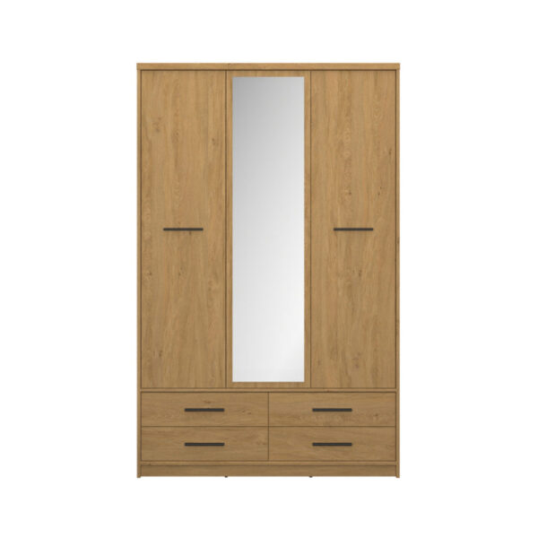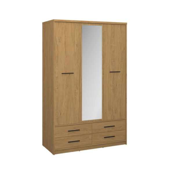 Ντουλάπα Τρίφυλλη με καθρέφτη Pavi Βελανιδιά 124.6×55.1×197.2cm