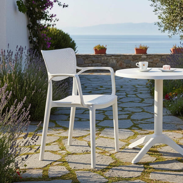 Πολυθρόνα Fagen pakoworld στοιβαζόμενη λευκό αλουμίνιο-φυσικό textilene 56x60x78εκ