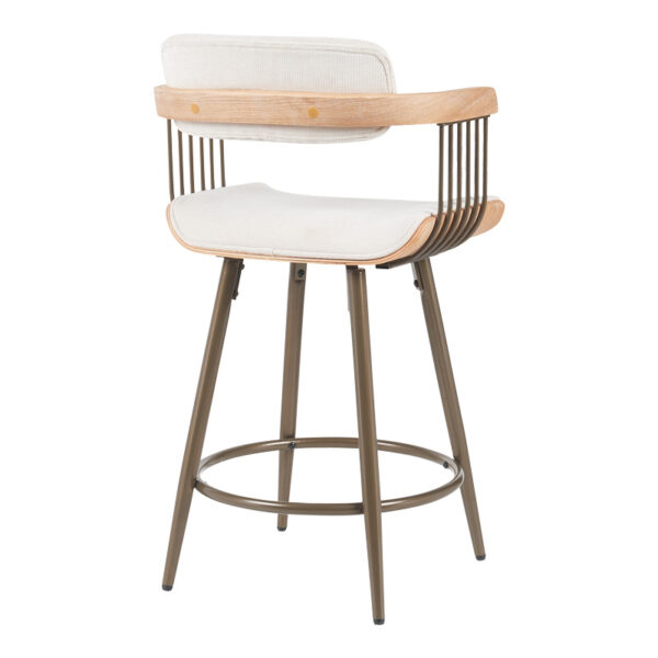 Σκαμπό μπαρ Cameo pakoworld περιστρεφόμενο μέταλλο μπρονζέ-white-wash ξύλο-μπέζ ύφασμα 53x50x93εκ