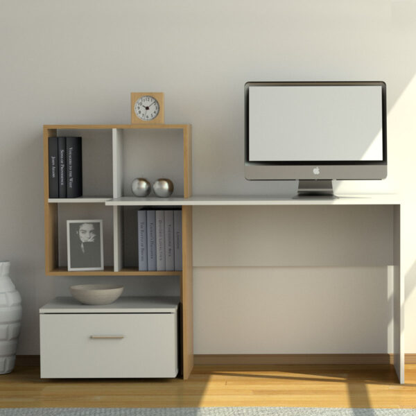 Γραφείο HO SHELF Λευκό-με Φυσικό Μοντέρνα Σχεδίαση 120x55x85εκ