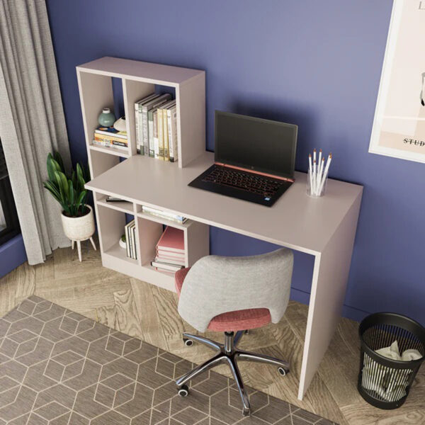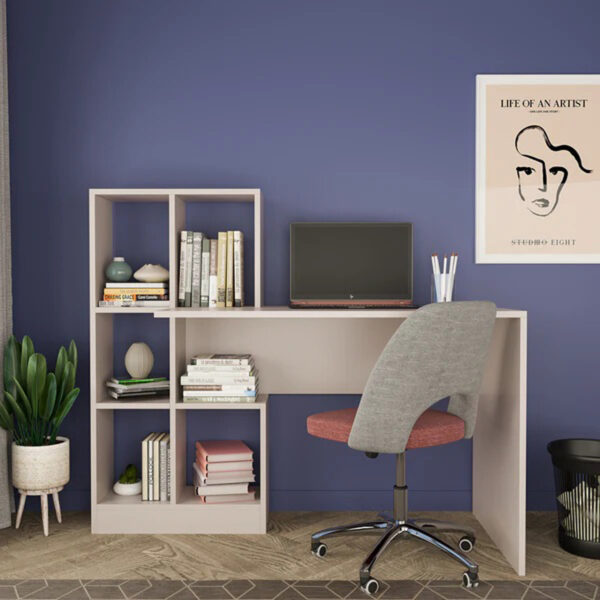 Γραφείο εργασίας με βιβλιοθήκη Dustin pakoworld σε απόχρωση ανοιχτό γκρι 118x56x112εκ
