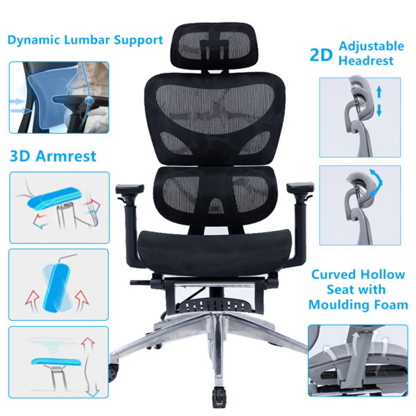 Καρέκλα γραφείου διευθυντή με υποπόδιο Verdant pakoworld Premium Quality mesh χρώμα μαύρο