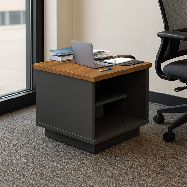 Τραπέζι γραφείου επαγγελματικό Oscar pakoworld μελαμίνη σε καρυδί-ανθρακί απόχρωση 60x60x42εκ