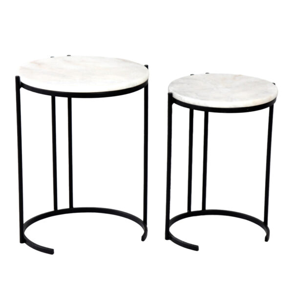 Boηθητικά τραπέζια σαλονιού σετ 2τεμ Luxere Inart μαύρο μέταλλο-λευκό μαρμάρου