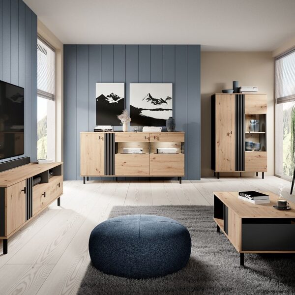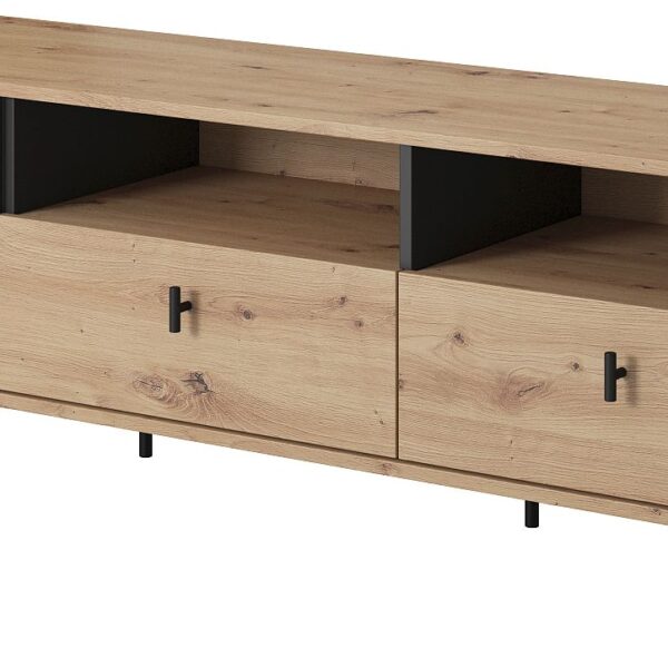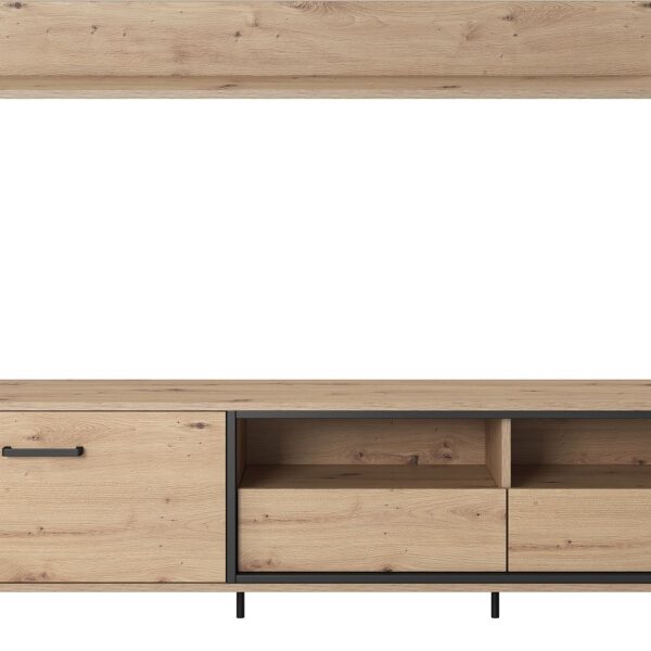 Έπιπλο τηλεόρασης Nest με ράφι. Χρώμα Φυσικό Artisan+Black pearl 165x49x40cm