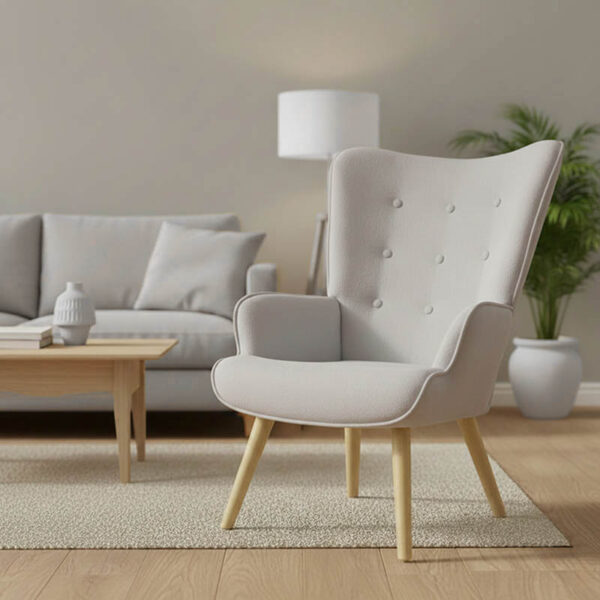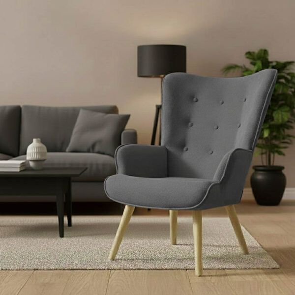 Πολυθρόνα Fluffy pakoworld ύφασμα γκρι-πόδι rubberwood φυσικό 75x69x96εκ
