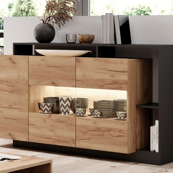 Μπουφές Alva Ανθρακί+ φυσικό golden craft 155×93.5x44cm