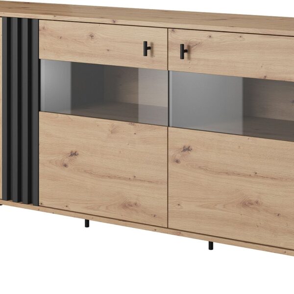 Μπουφές με βιτρίνα Madis φυσικό Artisan+Ανθρακί 165x82x40 cm