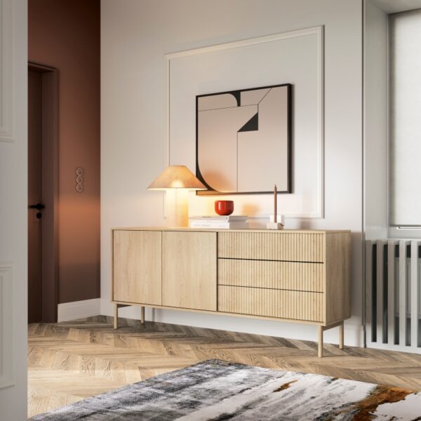 ΜΠΟΥΦΕΣ VERNE 147.9×37.2×91.8cm Λευκό-Φυσικό Δρυς