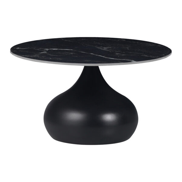 Τραπέζι σαλονιού Kirkene Inart sintered stone σε απόχρωση μαύρο μαρμάρου με μαύρο μέταλλο Φ70×40εκ