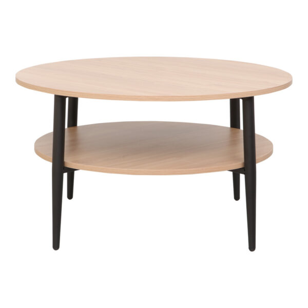 Τραπέζι σαλονιού Kody pakoworld σε φυσική απόχρωση με μαύρα μεταλλικά πόδια Φ80×45εκ