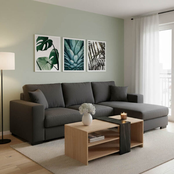 Γωνιακός καναπές δεξιά γωνία Camile pakoworld ύφασμα σε ανθρακί απόχρωση 270x174x95εκ