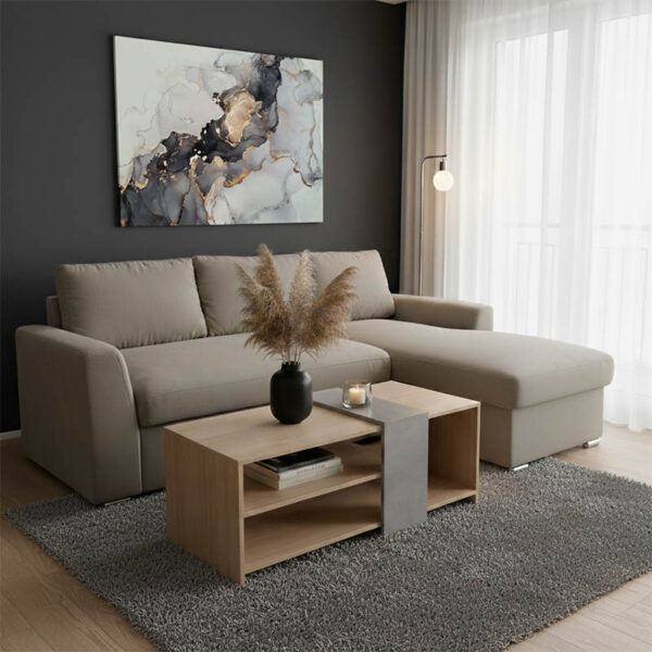 Γωνιακός καναπές-κρεβάτι αριστερή γωνία Belle pakoworld μπεζ 236x164x88εκ