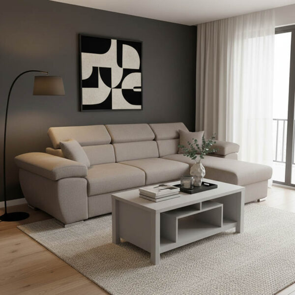 Γωνιακός καναπές-κρεβάτι αναστρέψιμος Venzie pakoworld ύφασμα σε γκρι απόχρωση 283x214x83εκ