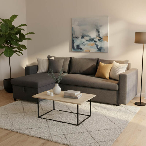Γωνιακός καναπές-κρεβάτι αναστρέψιμος Lilian pakoworld ανθρακί 225x148x81εκ