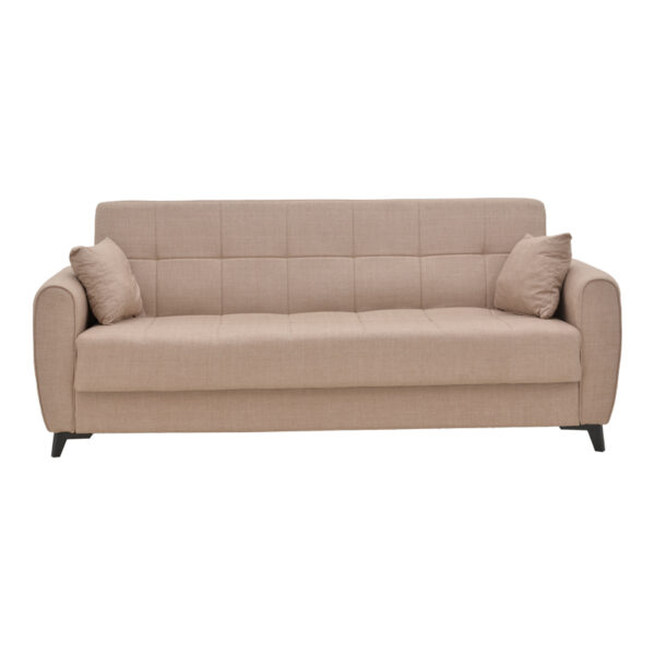 Καναπές-κρεβάτι με αποθηκευτικό χώρο τριθέσιος Modesto pakoworld ανοιχτό καφέ ύφασμα 215x85x80εκ