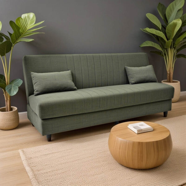 Καναπές-κρεβάτι με αποθηκευτικό χώρο τριθέσιος Romina pakoworld πράσινο ύφασμα 190x75x85εκ