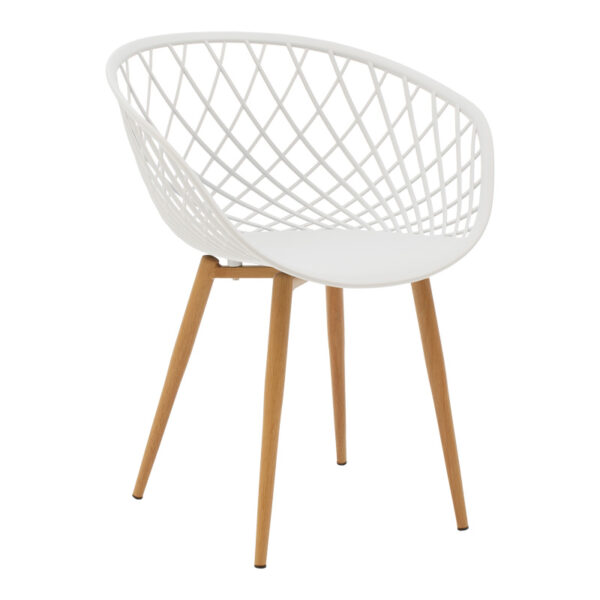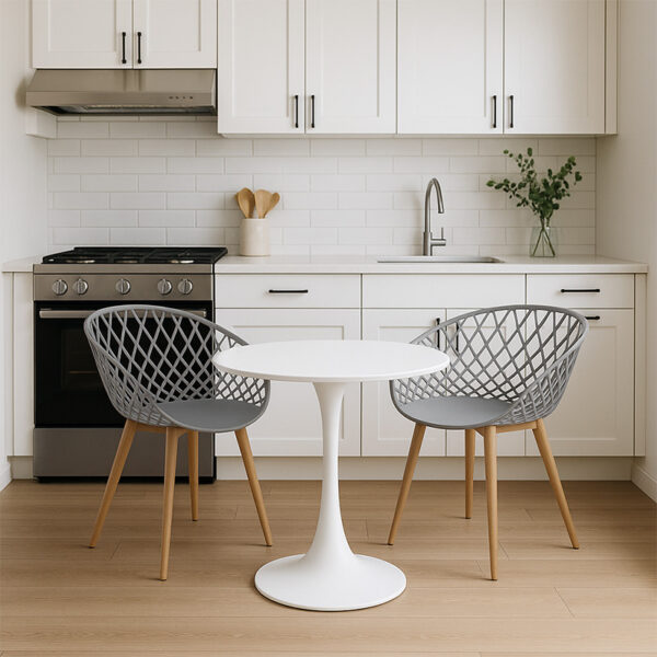 Τραπεζαρία Elijah-Ezra pakoworld σετ 3τεμ pp-pu σε λευκή απόχρωση με φυσικό πόδι Φ60×74εκ