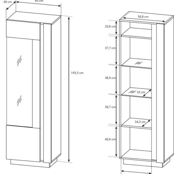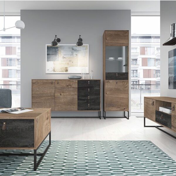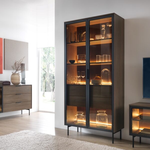 Βιτρίνα Basic Χρώμα: Jackson Hickory +Γραφίτης 104x185x39cm