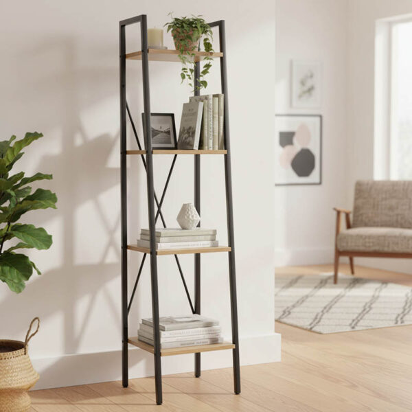 Βιβλιοθήκη Ryder pakoworld σε oak-μαύρη απόχρωση 75x36x185εκ