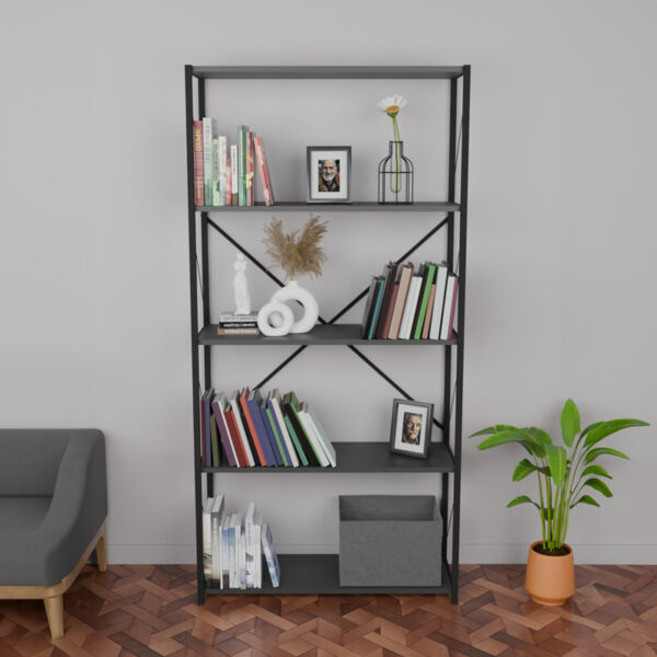 Βιβλιοθήκη Tars pakoworld ανθρακί-μαύρο 84x24x157εκ