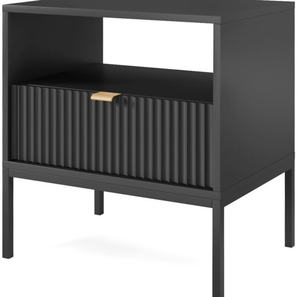 Κομοδίνο Naida pakoworld σε ανθρακί απόχρωση -μαύρα μεταλλικά πόδια 40x30x59εκ