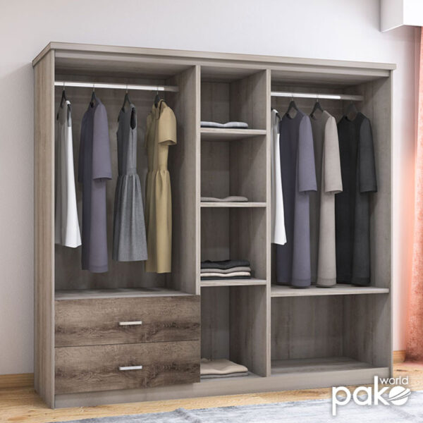 Ντουλάπα ρούχων τετράφυλλη Olympus pakoworld σε sonoma απόχρωση 159x57x183εκ