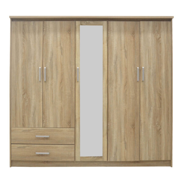 Ντουλάπα ρούχων πεντάφυλλη OLYMPUS pakoworld σε sonoma απόχρωση 198x57x183εκ