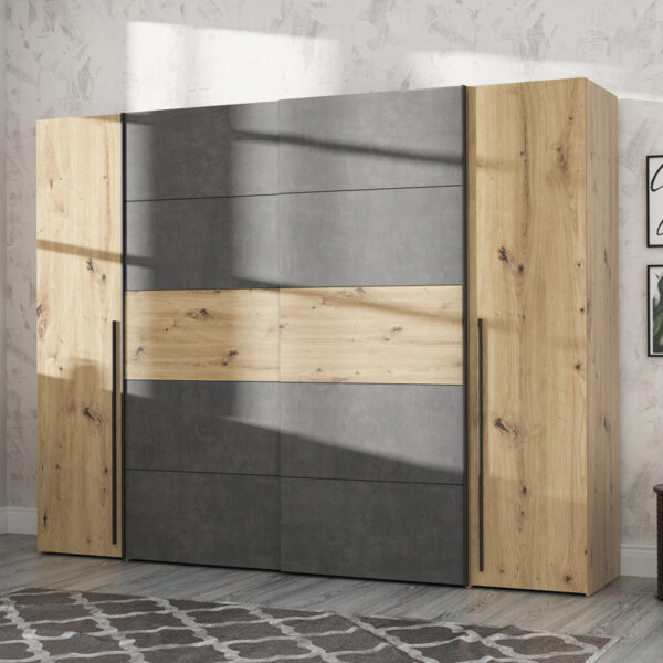 Ντουλάπα ρούχων Verzo pakoworld τετράφυλλη oak-ανθρακί μελαμίνης 270.5×61.5×210.5εκ