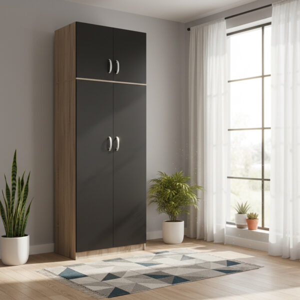 Ντουλάπα Δίφυλλη Top Mix Λευκή με Sonoma 80x57x183cm