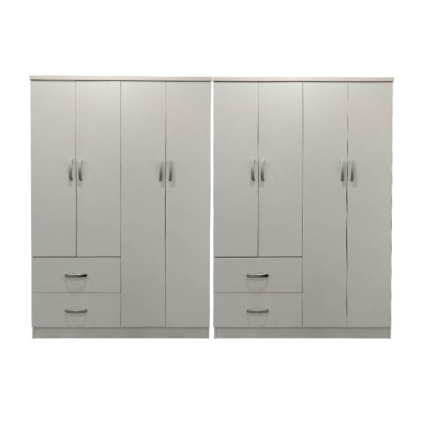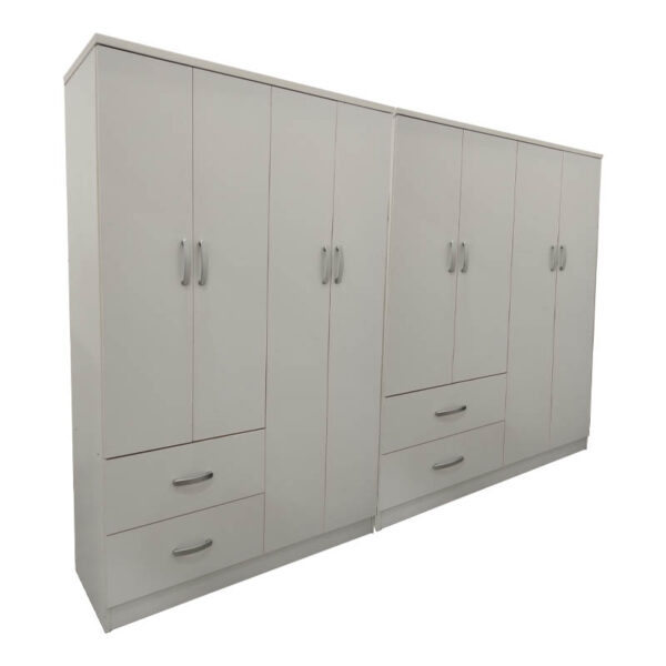 Ντουλάπα εξάφυλλη με συρτάρια και πατάρι Lego pakoworld λευκή 240x42x240εκ