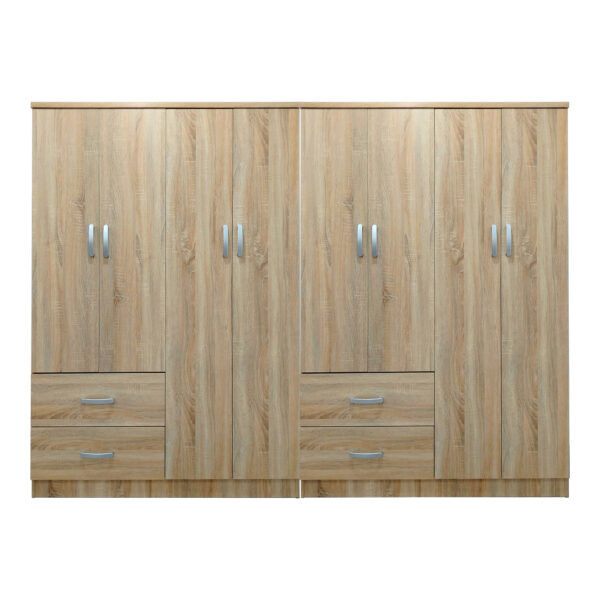 Ντουλάπα εξάφυλλη με συρτάρια και πατάρι Lego pakoworld sonoma 240x42x240εκ