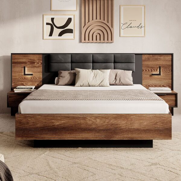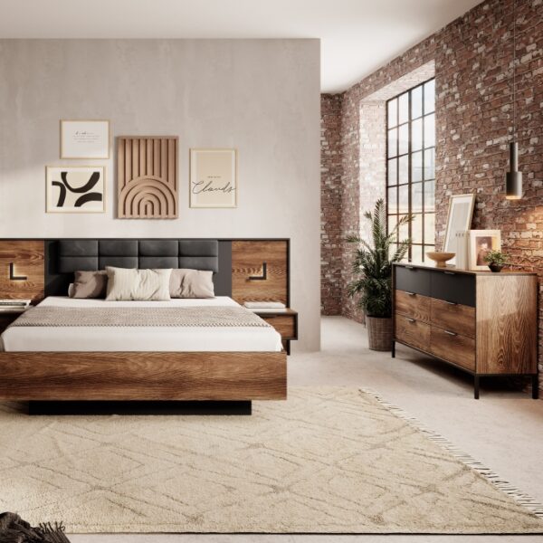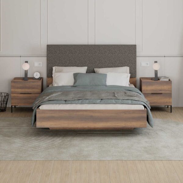 Σετ Κρεβατοκάμαρας Oryana Καρυδιά με υφασμάτινο κεφαλάρι για στρώμα 160x200cm