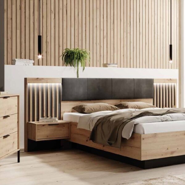 Σετ κρεβατοκάμαρας Viki Φυσικό Dab Barista με αποθηκευτικό χώρο για στρώμα 160x200cm 3 τεμαχίων