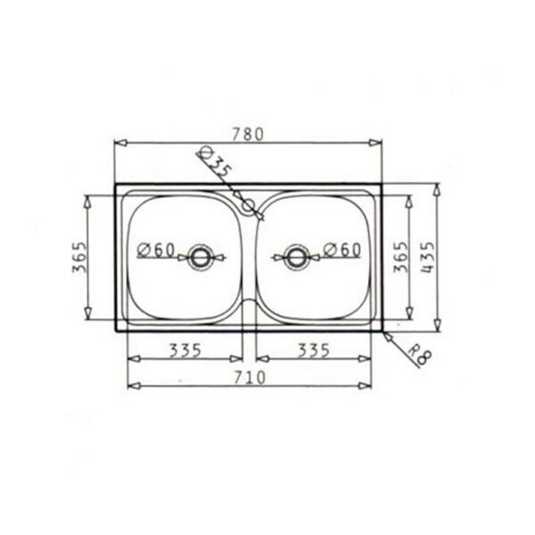 Νεροχύτης 2B Bradford pyramis 78X43.5cm Ενθετος με δύο γούρνες