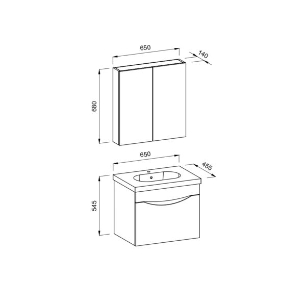 Καθρέφτης SIENA WHITE 65 3MSI065GL0W με ντουλάπια 60x14x65cm