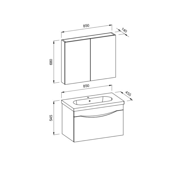 Καθρέφτης SIENA WHITE 90 3MSI090GL0W με ντουλάπια 87.5x14x65cm