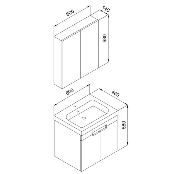 Σετ Έπιπλο Μπάνιο TREND Ανθρακί MDF 18mm Λάκα 60 9STRE060ABM